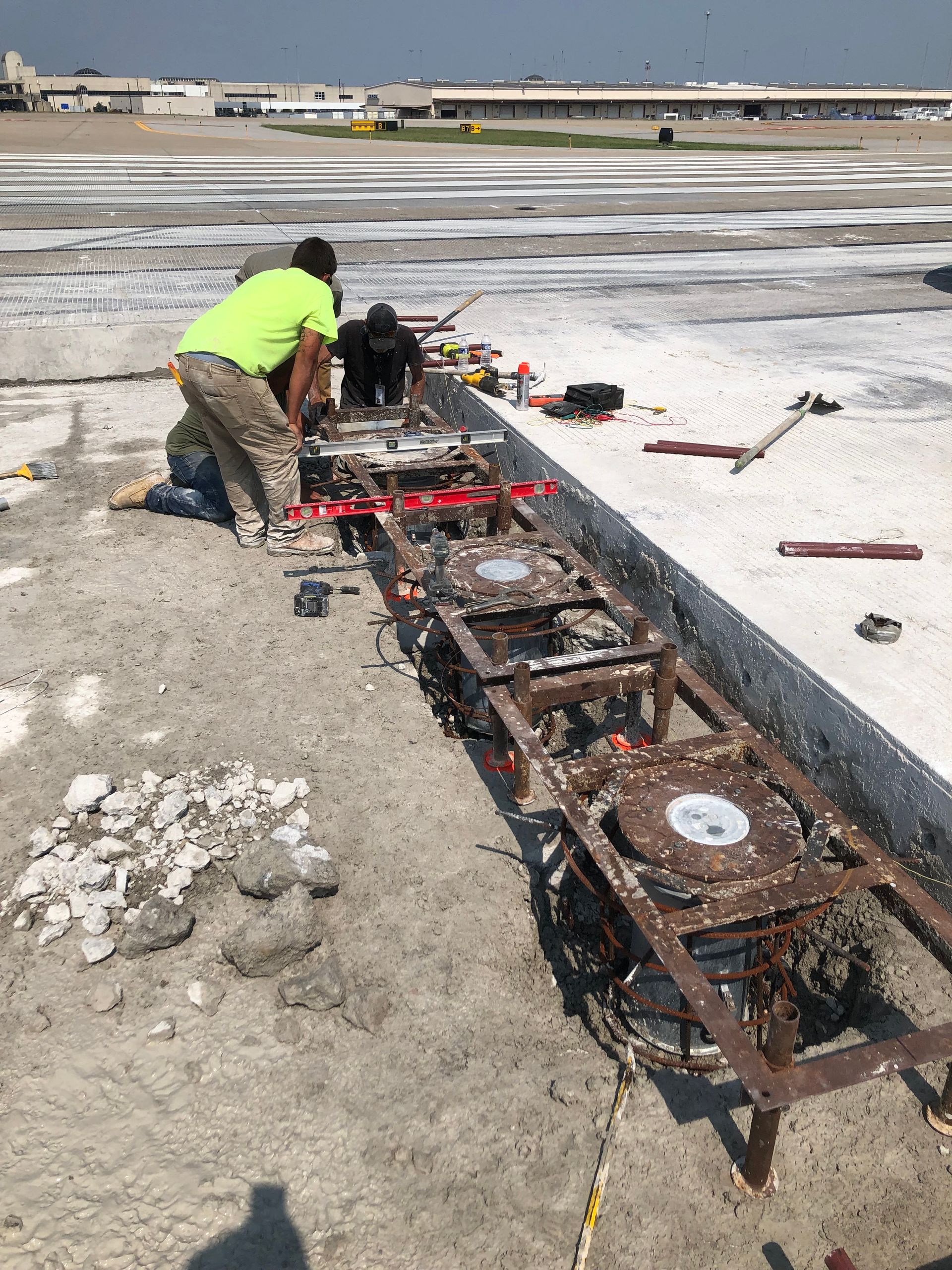 - 44 50’x25’ concrete panels replaced on 17R/35L and Taxiway Alpha which included 56 in pavement lights with new base cans and new subgrade conduit in CTB